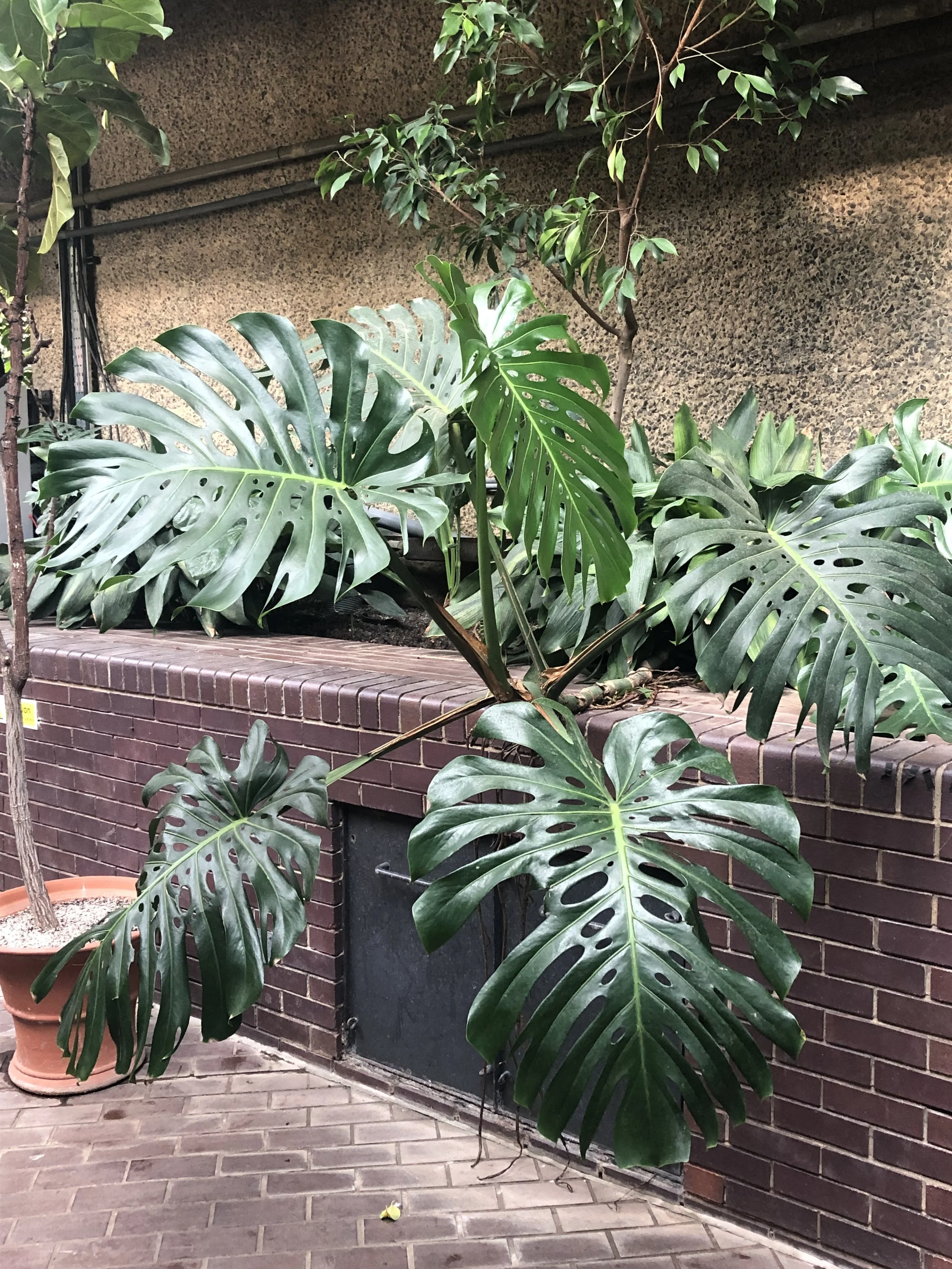 A very newer leaf on a very mature Monstera plant in The Barbican Conservatory, London.