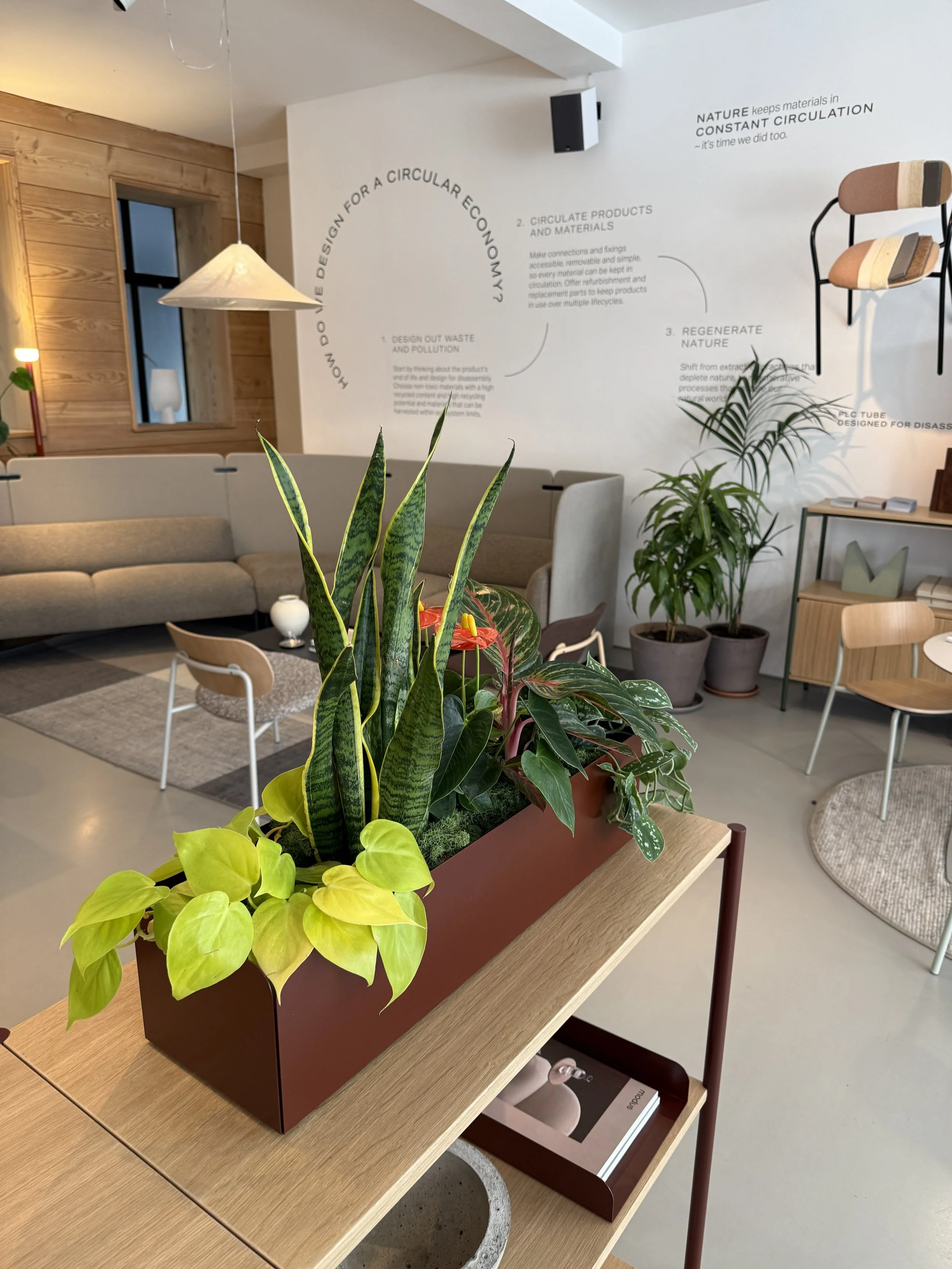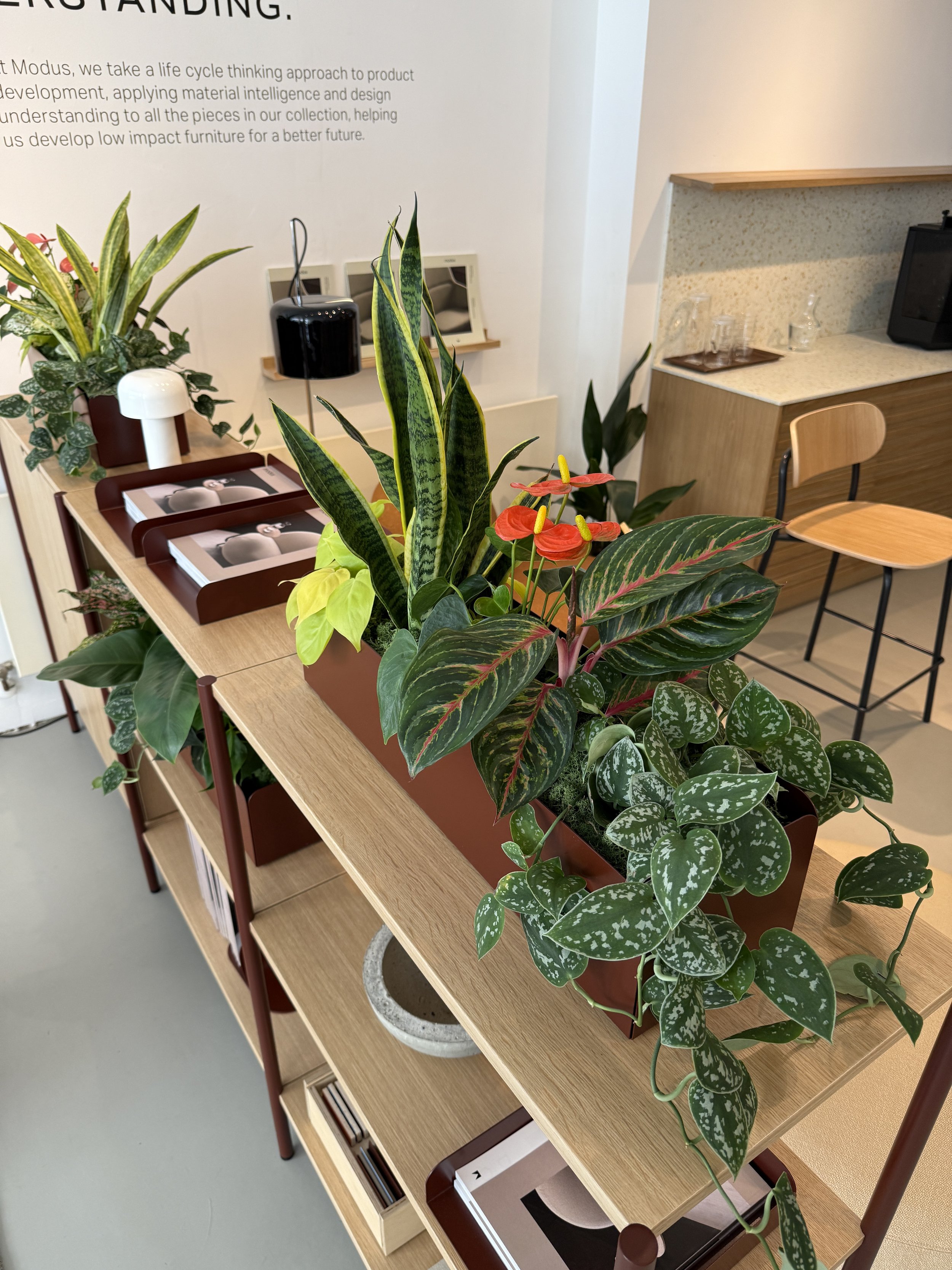 The Modus furniture showroom already excellently showcased how good design and ethically sourced products can improve a workspace. All they needed was a houseplant upgrade to really help set the tone of their brand for visiting office designers and clients.
