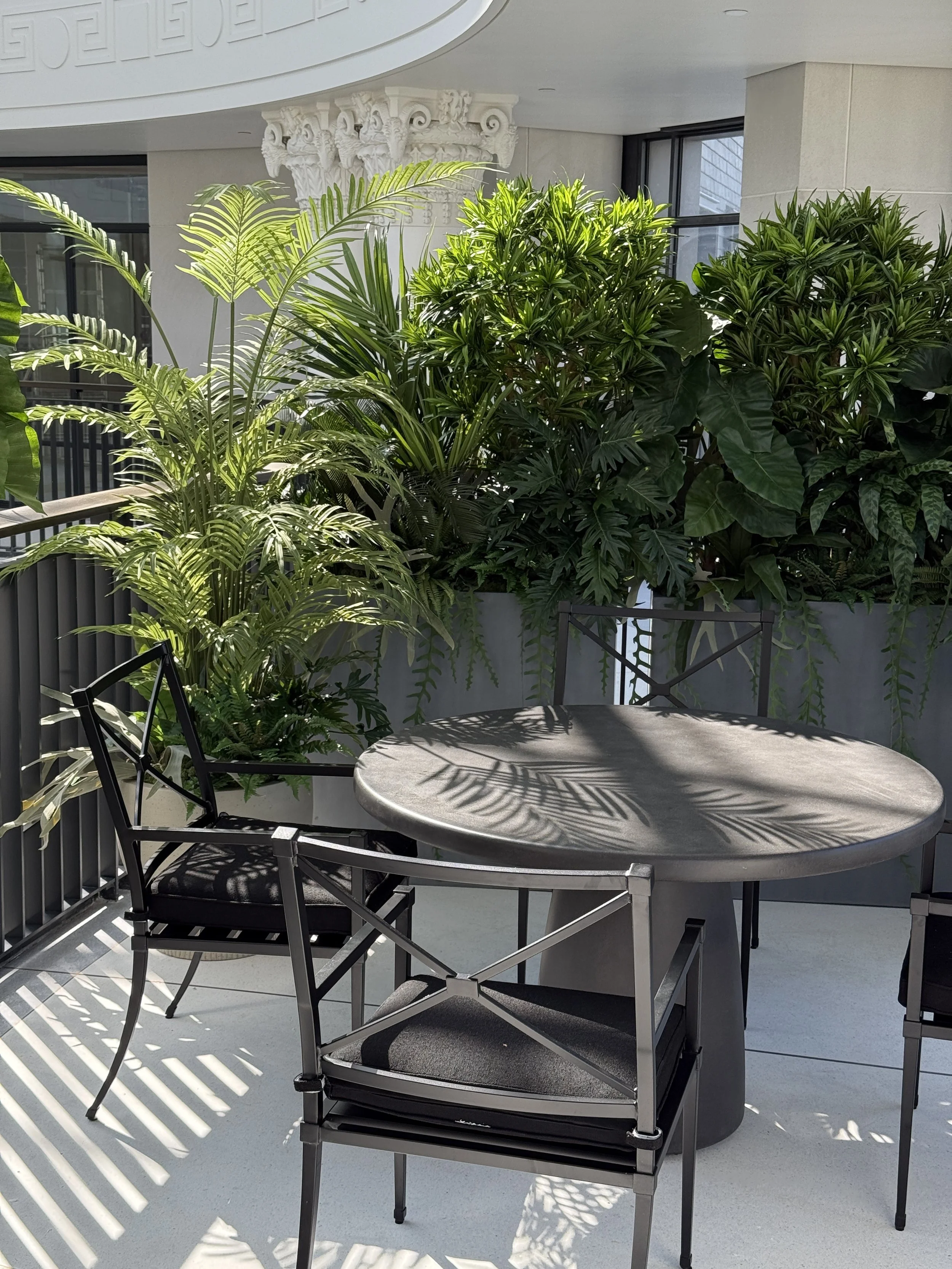 The brief also called for some soft screening to be created at either end of the balcony which was created with mixed foliage planters and grouped specimen potted displays.
